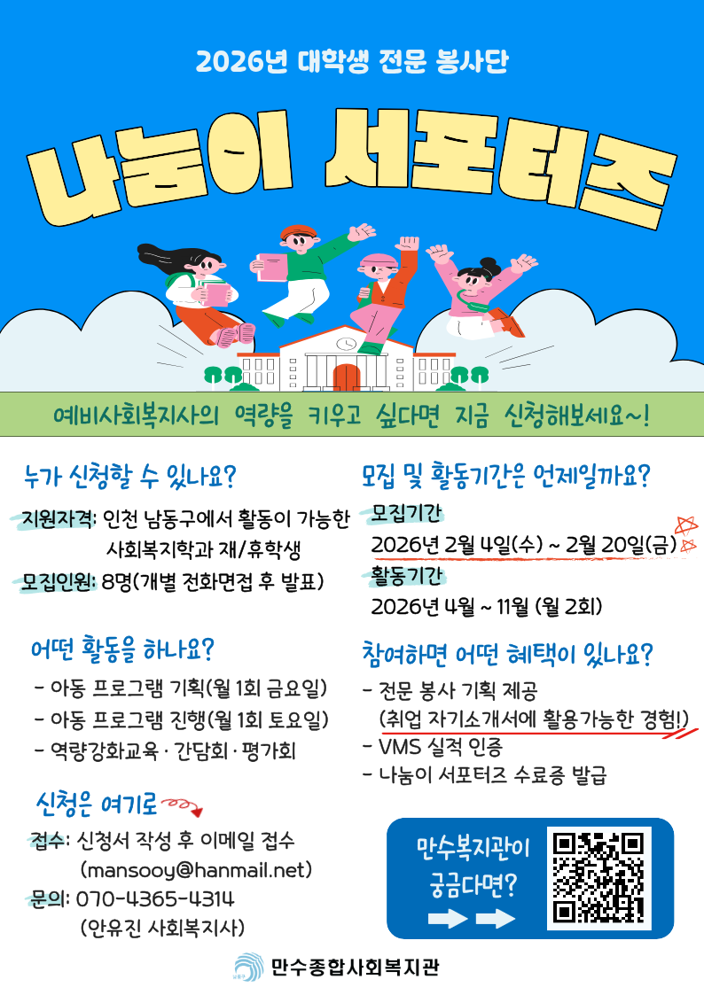 [만수종합사회복지관] 2026년 대학생 나눔이 서포터즈(봉사 서포터즈) 모집 안내