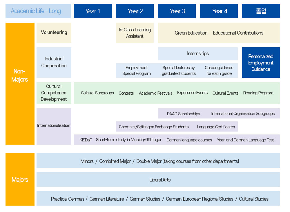 - The goal of the Dept. of German Language & Literature is to develop professional and practical German and European specialists. Students achieve this by acquiring practical knowledge of the German language and deepening their understanding of German culture and the European cultural region, including German regional studies.