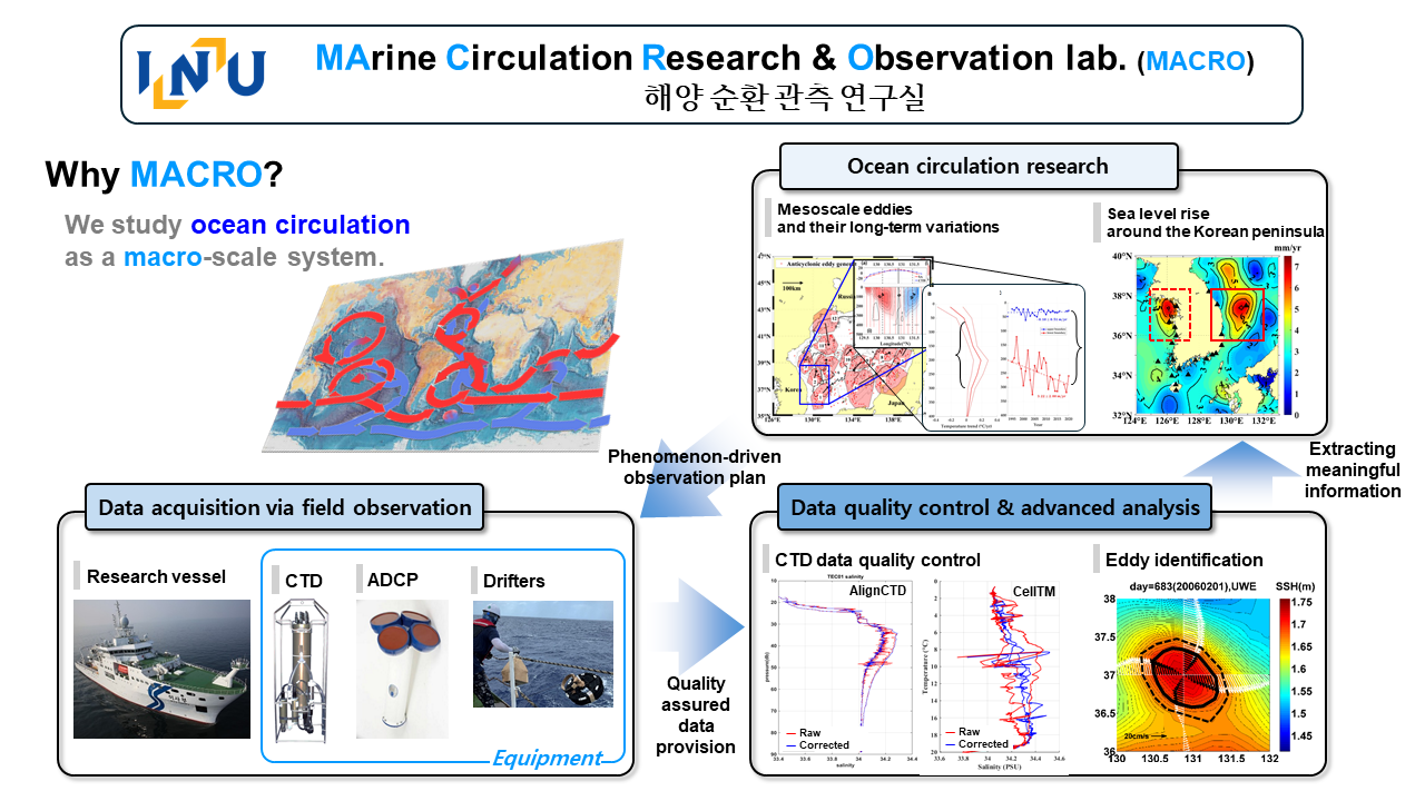 해양 순환 관측 연구실 MArineCirculation Research & Observation lab. (MACRO) 교수명 이경재 교수님 주전공 물리해양학, 해양환경관측 담당교과목 물리해양학 위치 5호관 308호 연구분야