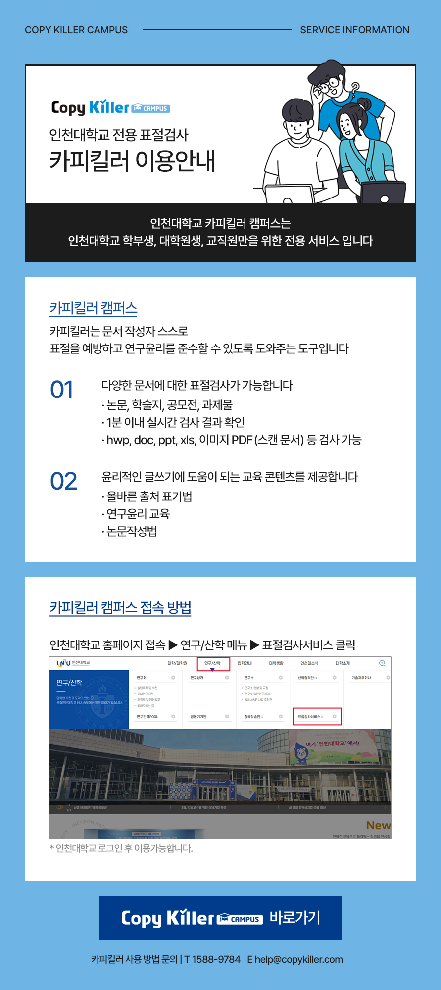 이러닝(메뉴바 하단▸Copy Killer campus) 등을 통해 이용